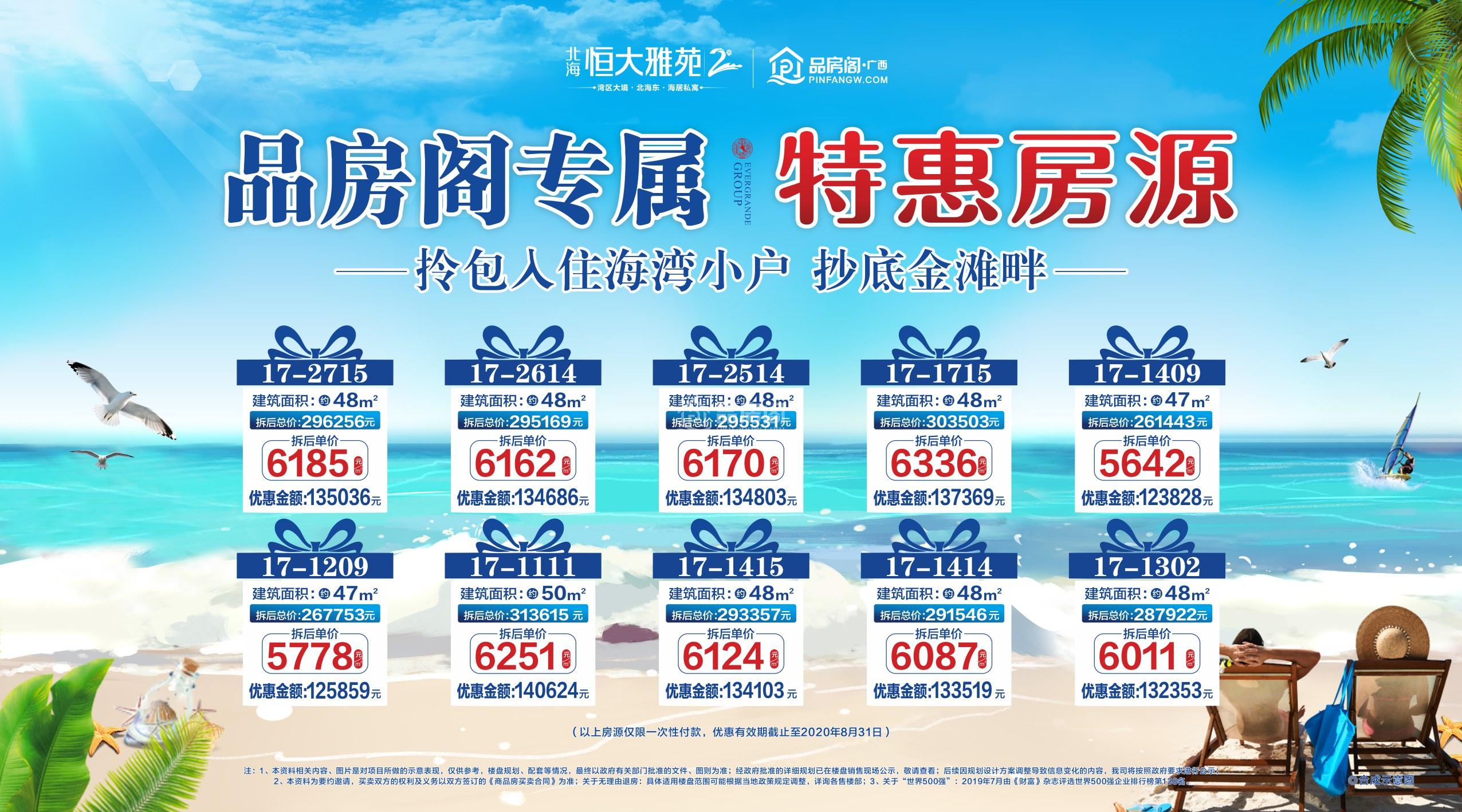 北海恒大雅苑暑期大放送,推出10套特惠房源建筑面积约47-50㎡海湾小户型。